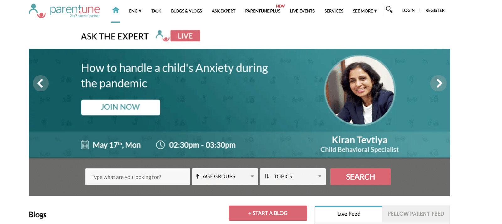 Screengrab from Parentune’s website