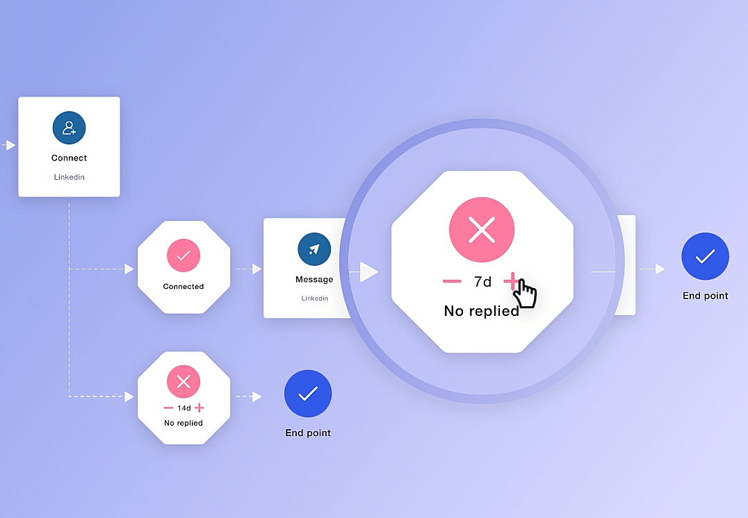 For example, you can start by retrieving the prospect's email and then sending a series of two emails. If the person does not reply to your emails, you will send an invite on LinkedIn and two follow-up messages. You can also try the other way around.