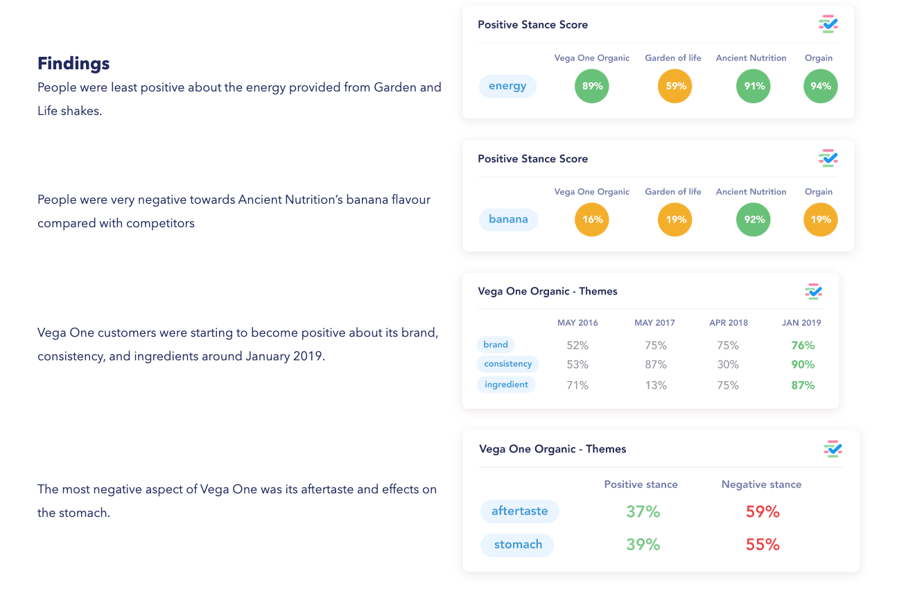 Another example of how their AI technology helps, in this case, is when they did an analysis about a company that makes protein powder. Their client wanted to know what people are saying about their products. When they tracked, there’s one specific comment that has the phrase “sickly sweet.” They identified it as a negative though it has a positive word (“sweet”). Because when that positive word was paired with “sickly,” it becomes a negative sentiment towards the product.