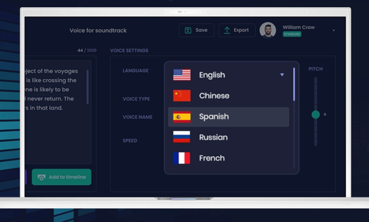 You can cut and paste or type in what you want to be voiced over. Then you can choose different voices and adjust the pitch and the tone. You can make it sound slower if you want it to be easily understandable. You can also make it faster. You can choose if the voice is male or female, young or old. You can also choose a voice with different regional accents (e.g. American English or French- or German-spoken English). You can also have your content spoken in local languages.