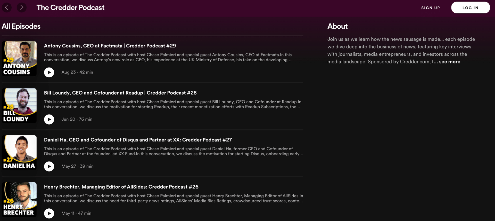 In the podcast, Chase shared that Credder will definitely upset some folks in journalism — like how Yelp upsets some restaurant owners and Rotten Tomatoes upsets some movie and production studios.
