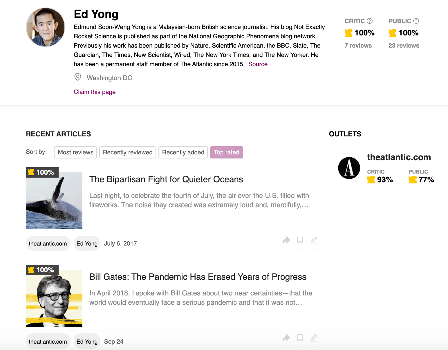 When you think of Rotten Tomatoes, you know that there’s a critic score and an audience score. The same thing applies to Credder. They have journalists reviewing under one category and the public under another.