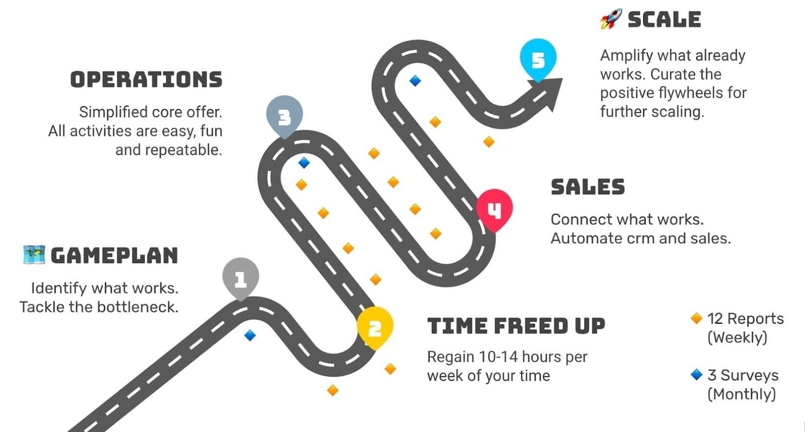 Sprint coaches come with a set of questions. One example is, “If you get 10 times more clients next week, which part of your business breaks first?” Maybe, in Week 0 you can still get all of your clients aboard, but in Week 1 there will already be a specific part that breaks because you have a limited number of people. With that, you’ll be able to identify, “There’s a manual process in there. That's the bottleneck. How can we scale that so we can accommodate all our additional clients well?"