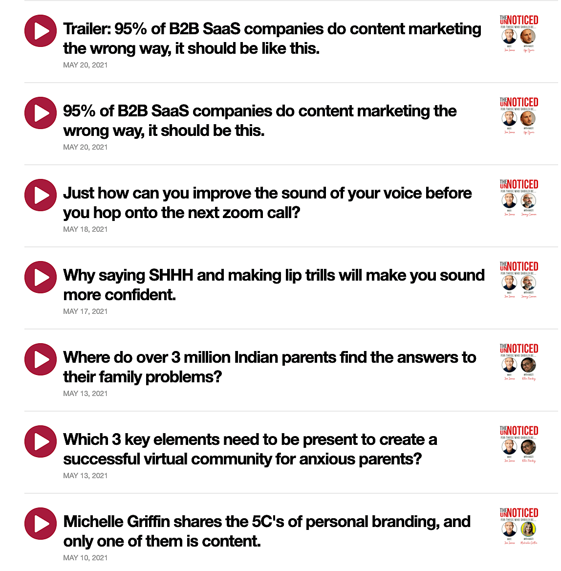 The UnNoticed book’s content, as mentioned, is a compilation of interviews that I’ve done. However, the challenge is that some of those interviews don’t necessarily strictly conform to my five-stage methodology. One interview may only cover one area — storification, personalisation, engagement of content, amplification, or quantification. As I’ve featured both entrepreneurs and experts on the show, I’ve also got different perspectives around the same narrative.