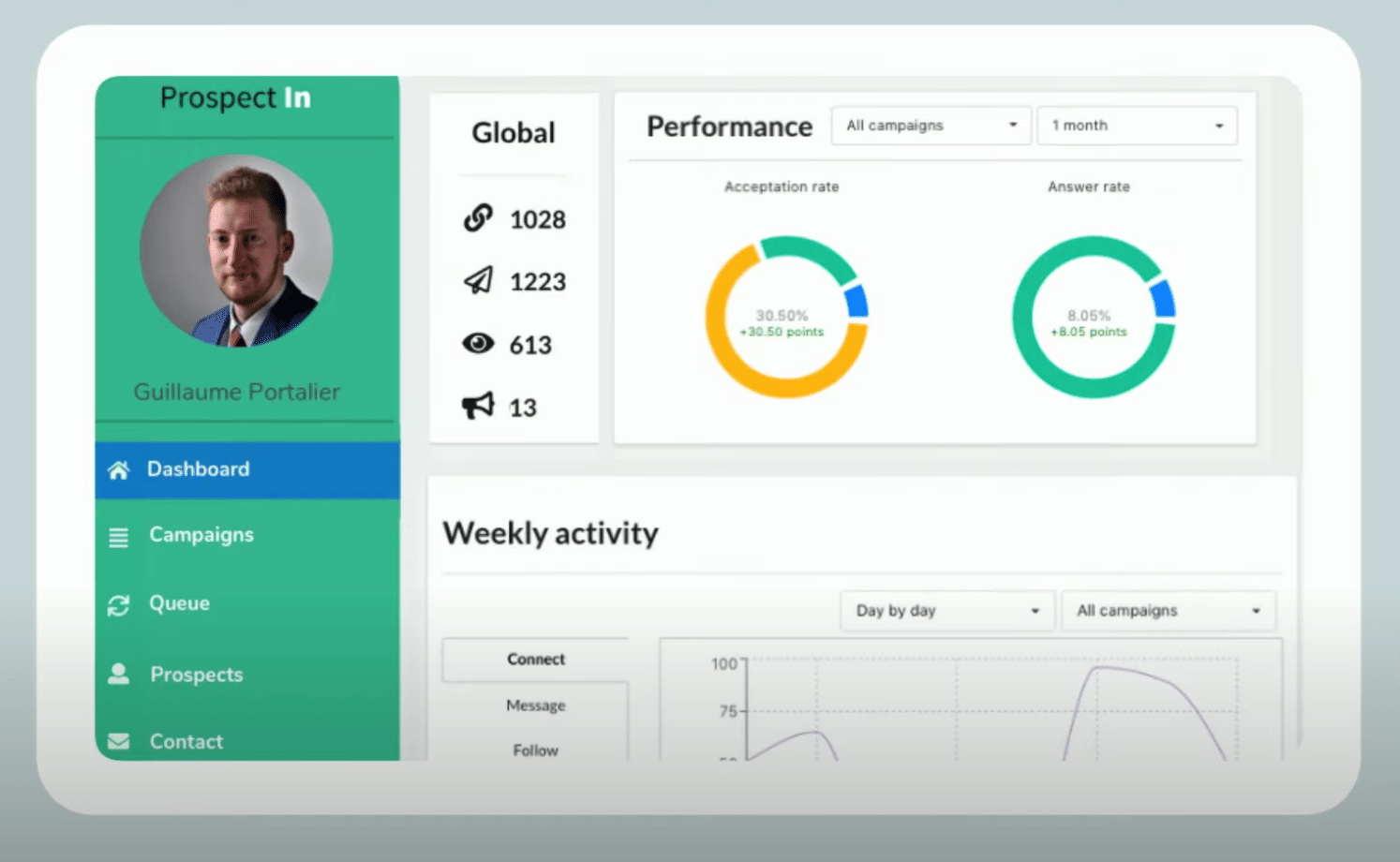 To track your results, ProspectIn has a dashboard that can be filtered by campaign or by date. With this, you will have an overview of your response rates and you will see which campaign works best. You can also perform A/B testing on the notes or the messages that you send. This will help you identify which one helps increase your acceptance rates.