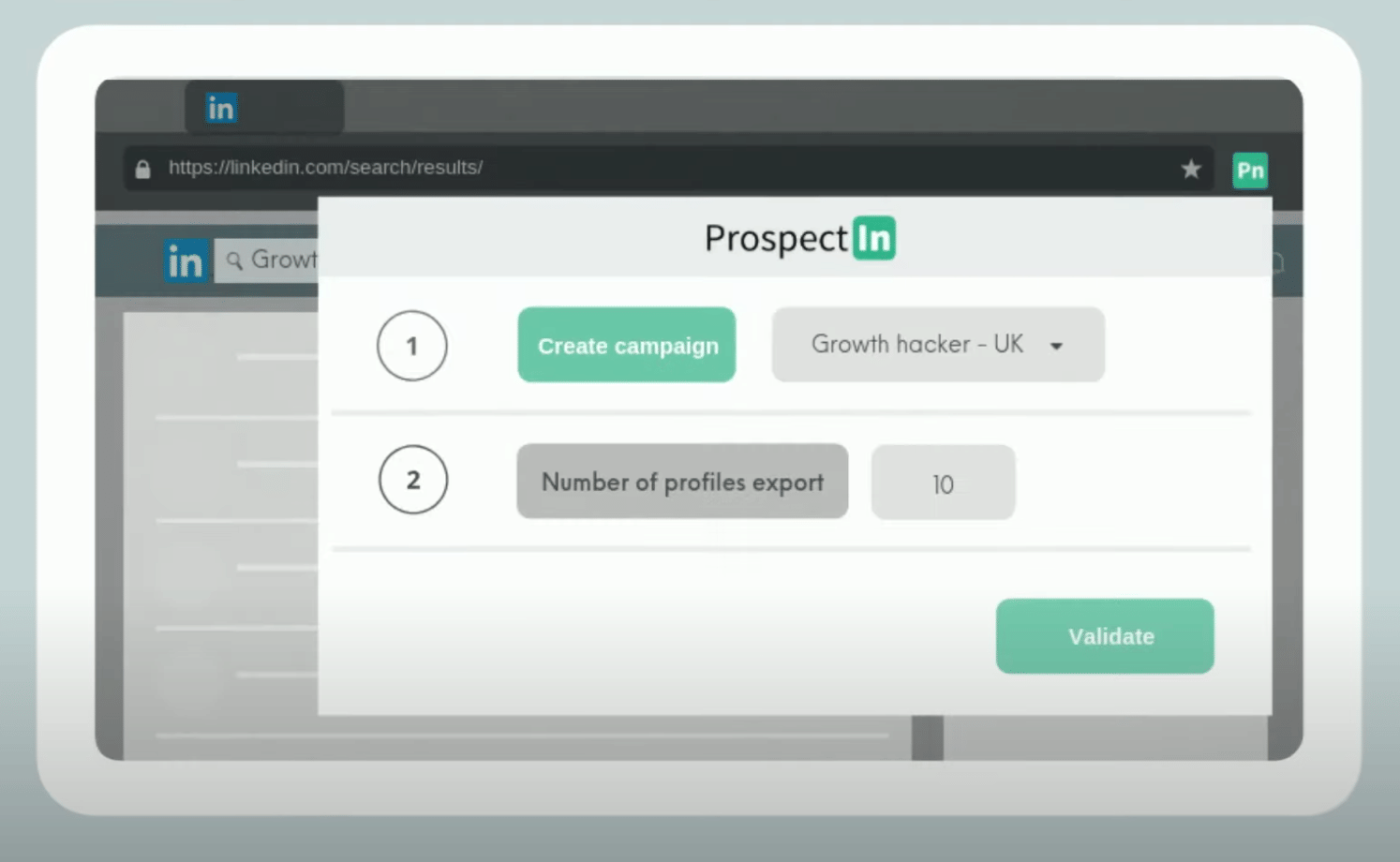To use ProspectIn, which is a Google Chrome extension, you have to have Google Chrome as your browser. Simply download the extension and it will automatically sync with your LinkedIn account.