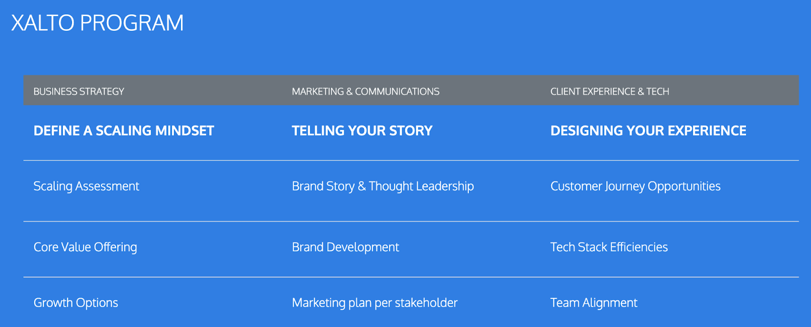 Scalto has a blueprint called the X Alto program, in which they define the three main verticals you need to scale.