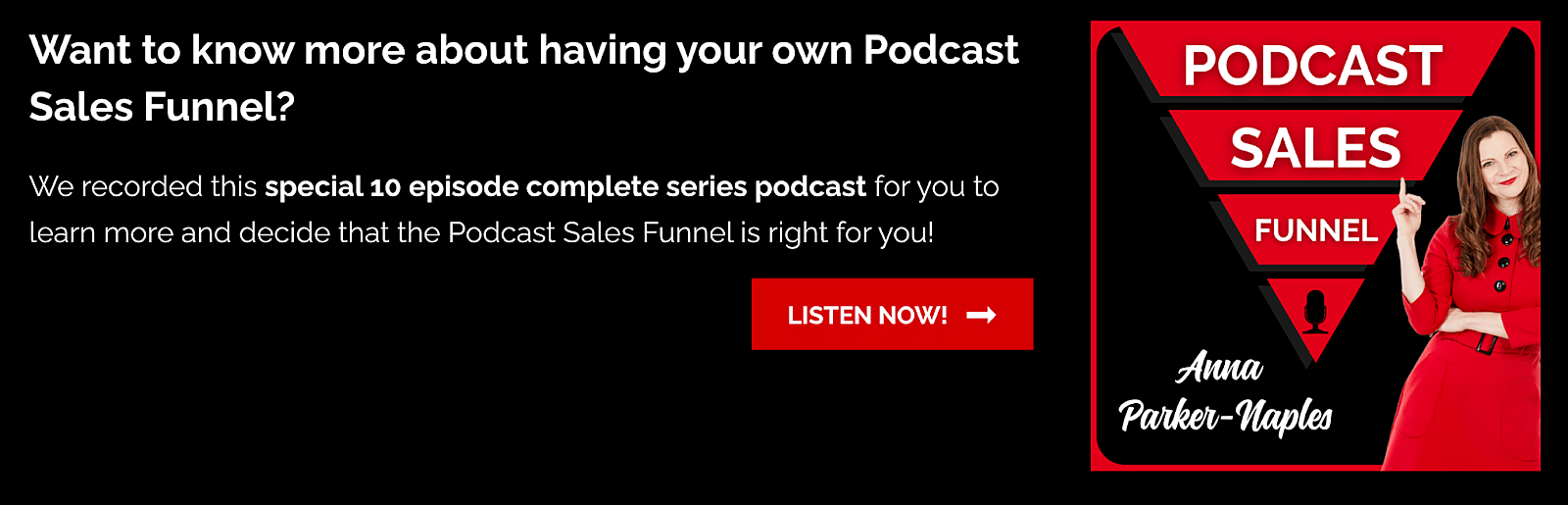 Anna Parker-Naples was the guest on the new episode of The UnNoticed Entrepreneur and she talked about building a “podcast sales funnel,” which is a trademark of her company, The Podcast Agency. She’s a best-selling author and she helps companies, entrepreneurs, and larger businesses build podcasts and take advantage of the fast-growing medium.