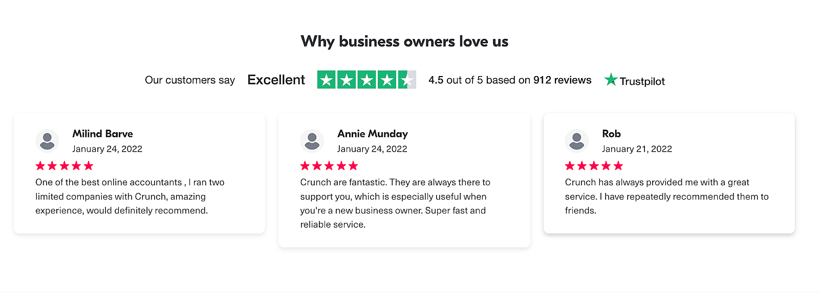 What Crunch did just below that section is to use Trustpilot, which is social proof. Why do business owners love them? They have 4.5 as the average score and they have over 910 reviews. It’s nearly up to 1,000 and that is just as of January 2022.