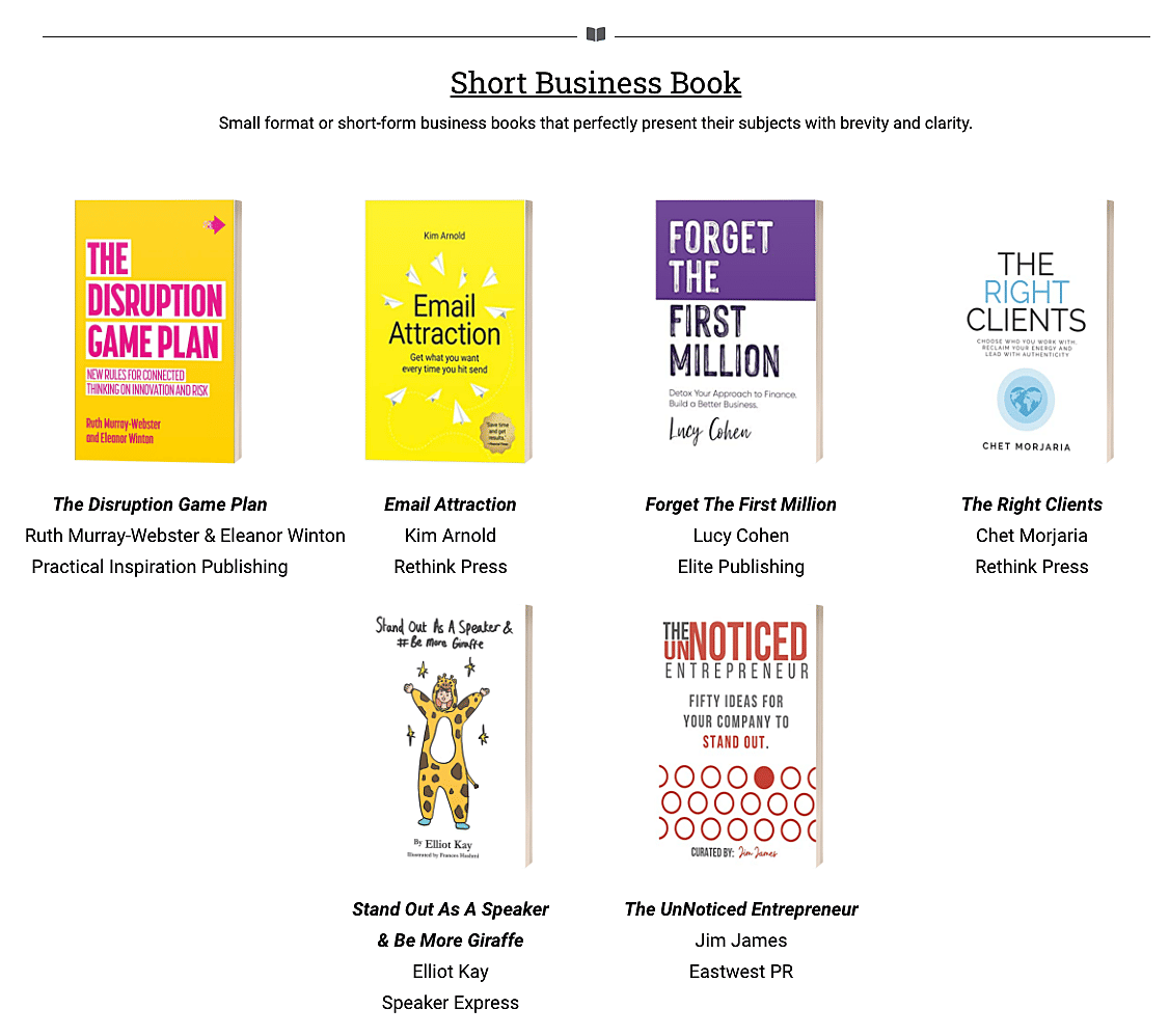 I don’t think my book will ever be a best-seller. But what happened is that I entered it for an award called the Business Book Awards in the UK. They just announced their finalists in the business category and the UnNoticed Entrepreneur book is a finalist.